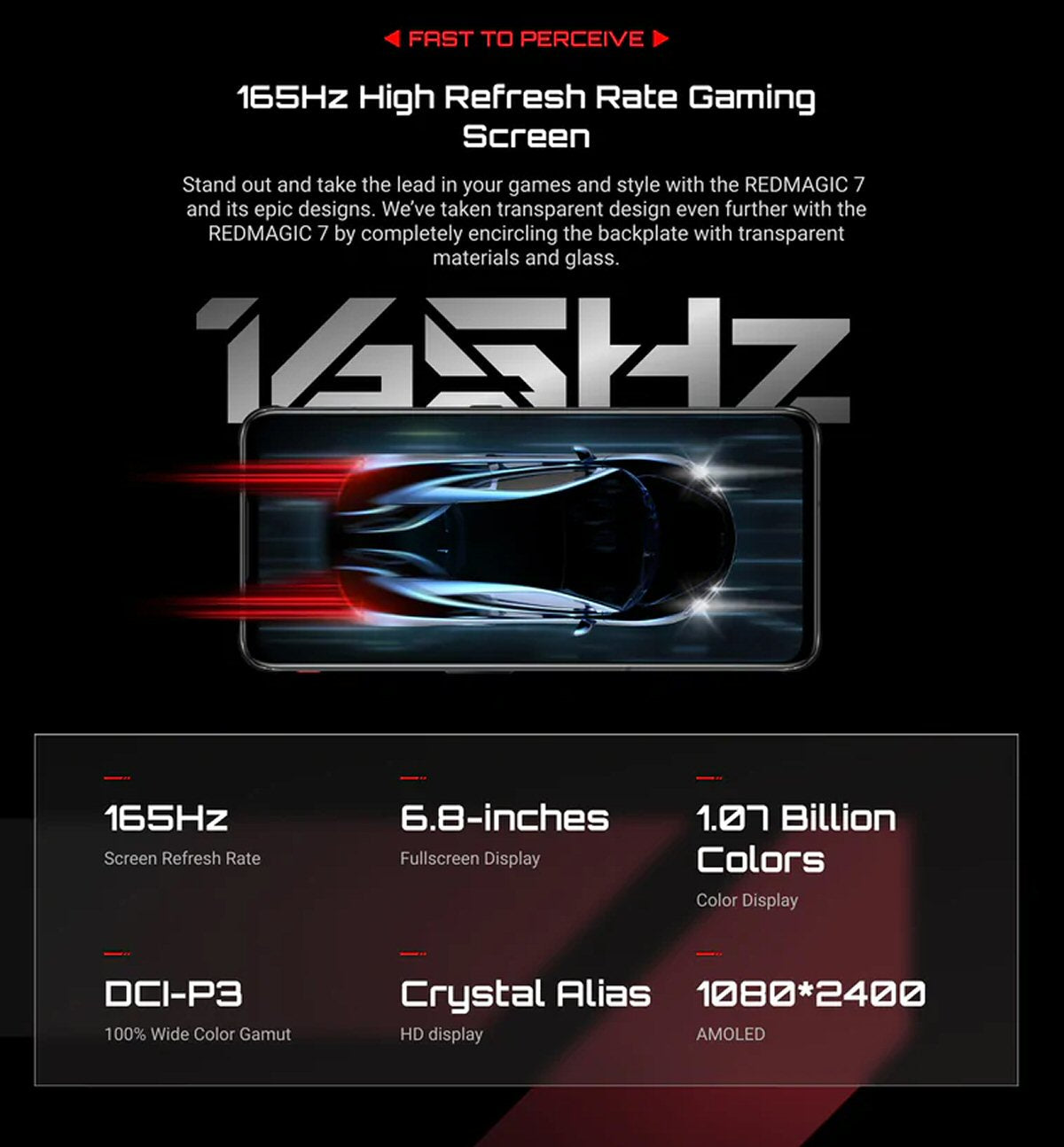 TAUX DE RAFRAÎCHISSEMENT - Le RED MAGIC a un taux de rafraîchissement étonnant de 165 Hz, pour la sortie vidéo la plus fluide que vous puissiez demander.