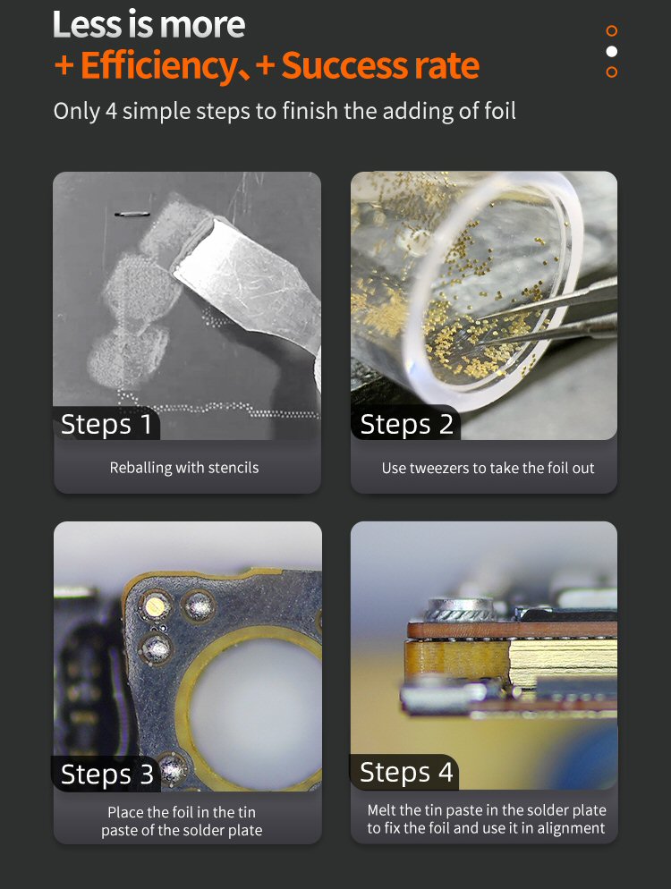 VARIÉTÉ D'APPLICATIONS - Ces tampons de ressoudage Qianli peuvent être utilisés sur une variété de composants électriques, y compris les cadres intermédiaires, les BGA et les puces.