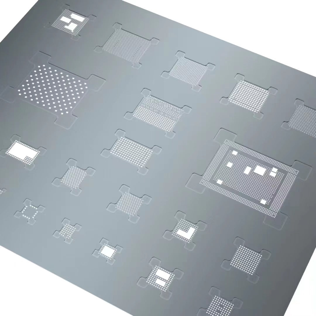 QUALITÉ - Ce pochoir de reballage est fabriqué à partir des meilleurs matériaux pour garantir sa capacité de travail. Conception ultra-mince de 0,12 mm avec une meilleure application de l'étamage de la pâte à souder, une flexion continue et une très grande résistance.
