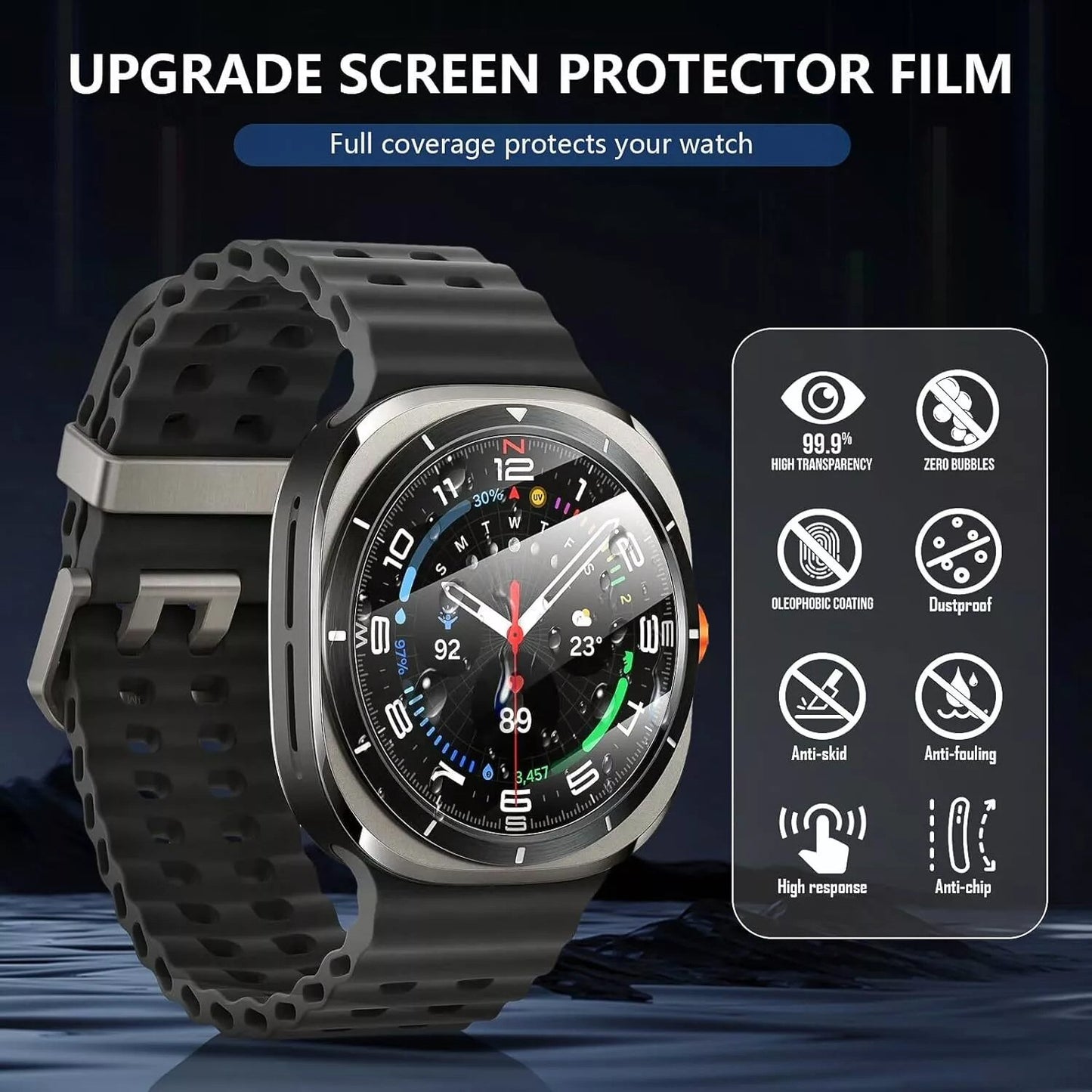 Ajustement précis : conçu spécifiquement pour la Samsung Watch Ultra, le protecteur adhère parfaitement, ne laissant aucun espace ni bulle.