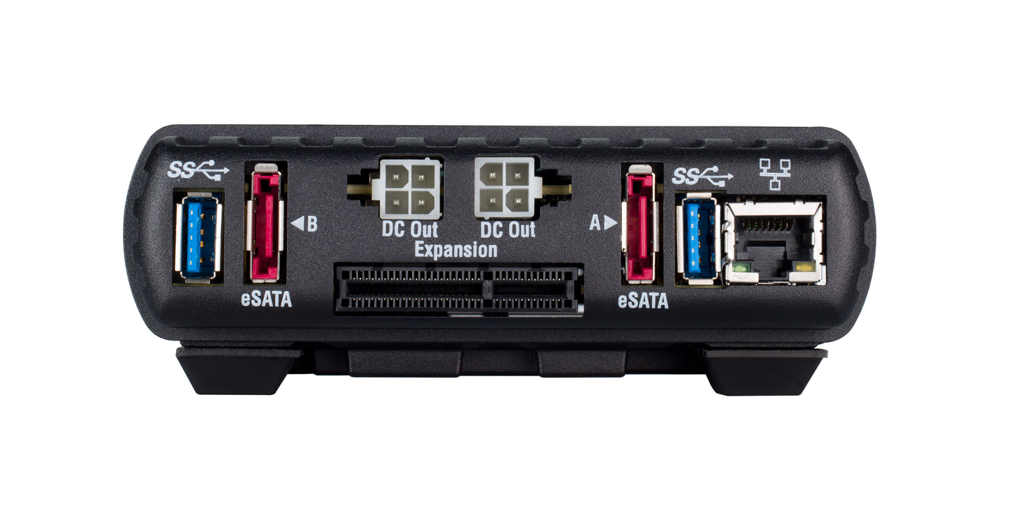 Ports hôtes (E/S) : (1) IDE/PATA -- côté source (2) USB 2.0 -- pour la connexion de périphériques (3) USB 3.0 -- une source, deux destinations -- jusqu'à 5 Gbit/s (3) eSATA -- une source, deux destinations -- jusqu'à 6 Gbit/s (3) Gigabit (1000Base-T) Ethernet -- une source, une destination, un accès GUI