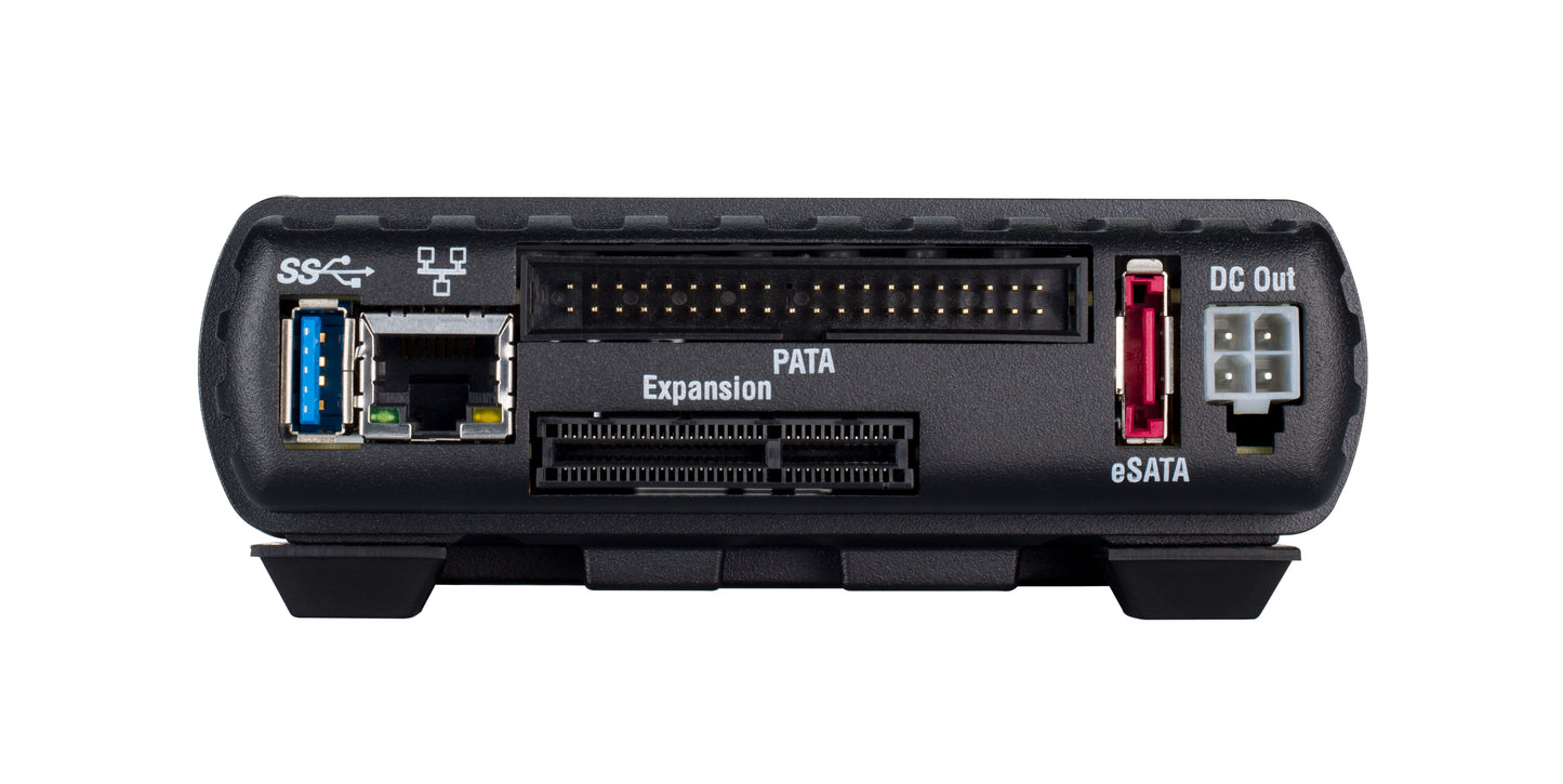 Types de lecteurs pris en charge : Lecteurs PATA/IDE 2,5" (avec adaptateur PATA 25) Lecteurs PATA/IDE 3,5 SATA 2,5" Lecteurs SATA 3,5" iSCSI (Network Attached SCSI) SATA SSD (disques SSD) Lecteurs SAS 2,5" (avec module d'extension SAS) Lecteurs SAS 3,5" (avec module d'extension SAS) Lecteurs Hitachi 1,8" (avec adaptateur PATA 25) Lecteurs Toshiba 1,8" (avec adaptateur PATA 18-TOSH) MacBook Air 2010 (avec adaptateur SATA) MSATA (avec adaptateur SATA) Mini PCIe PATA (avec adaptateur PATA mPCIe) Mini PCIe SATA (avec adaptateur PATA mPCIe) Mini PCIe USB (avec adaptateur PATA mPCIe) PCIe/NVMe (avec adaptateur) Clés USB (USB 3.0/2.0/1.1) Clés USB via un câble USB (USB 3.0/2.0/1.1) Lecteurs FireWire via un câble FireWire (avec module d'extension FireWire)