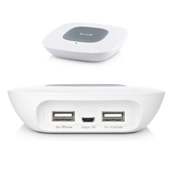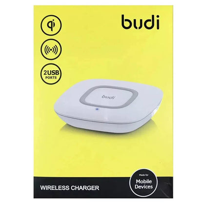 1 x Chargeur sans fil 10 W Budi avec 2 ports USB Blanc