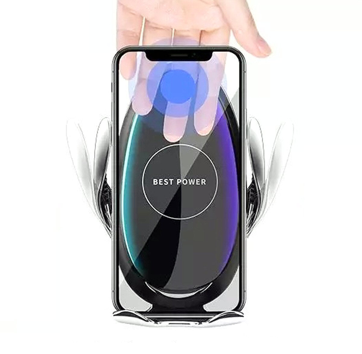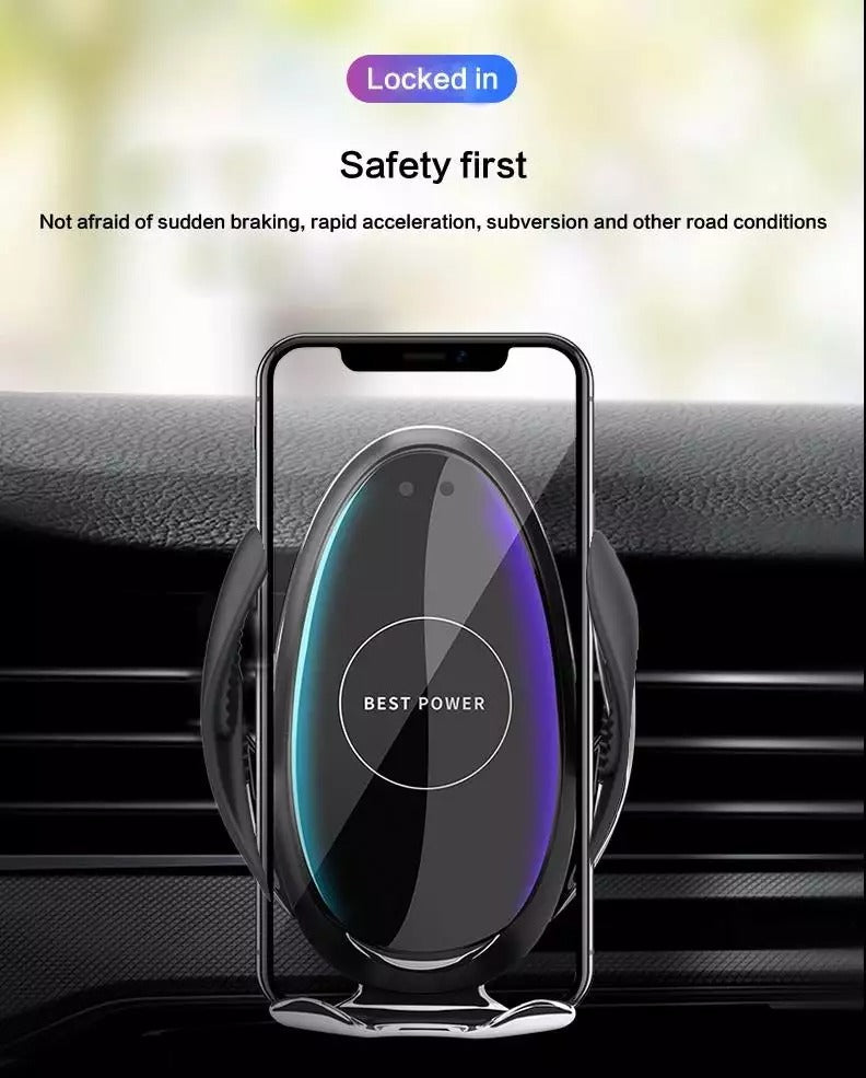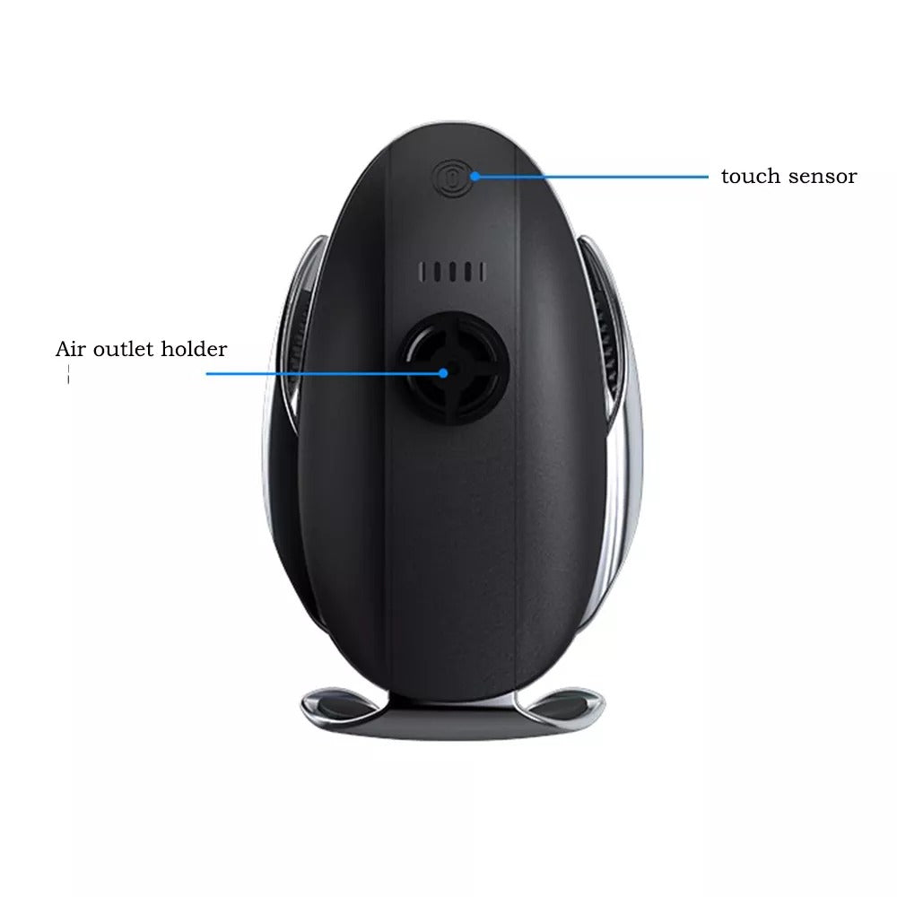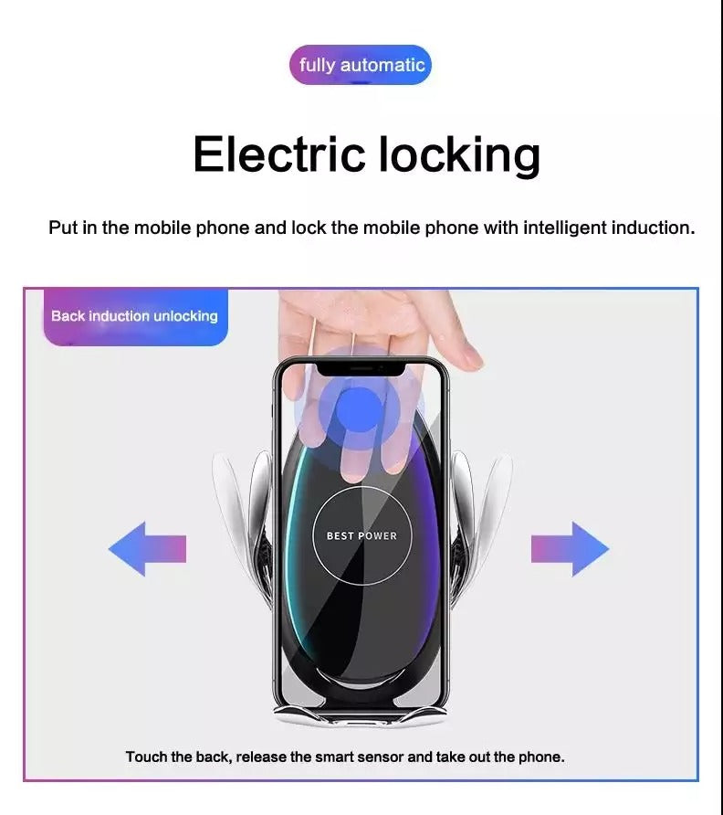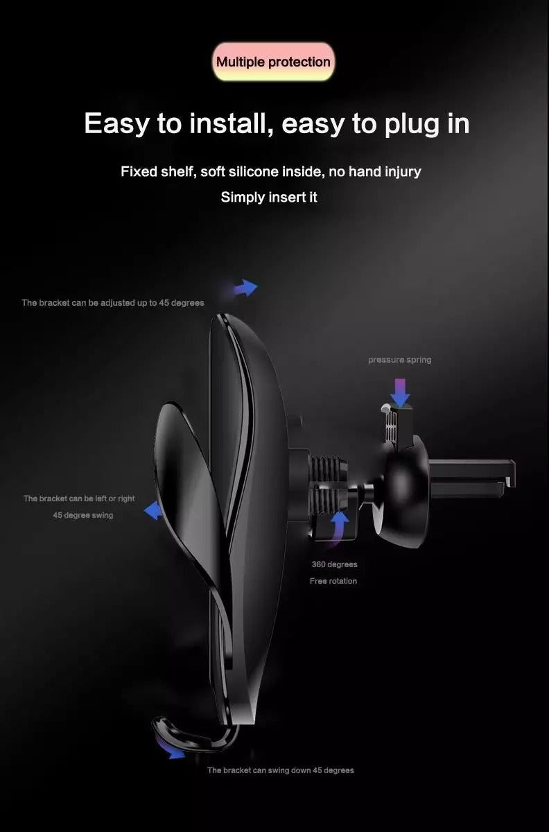 Bienvenue dans une nouvelle génération de charge sans fil. Ce support de téléphone intelligent à serrage automatique pour voiture sert également de chargeur sans fil rapide pour recharger nos smartphones. D'une seule main, il suffit de passer un geste devant le capteur infrarouge intelligent, les deux bras s'ouvriront automatiquement, insérez votre téléphone, la pince se refermera automatiquement pour maintenir votre téléphone et le recharger sans fil.