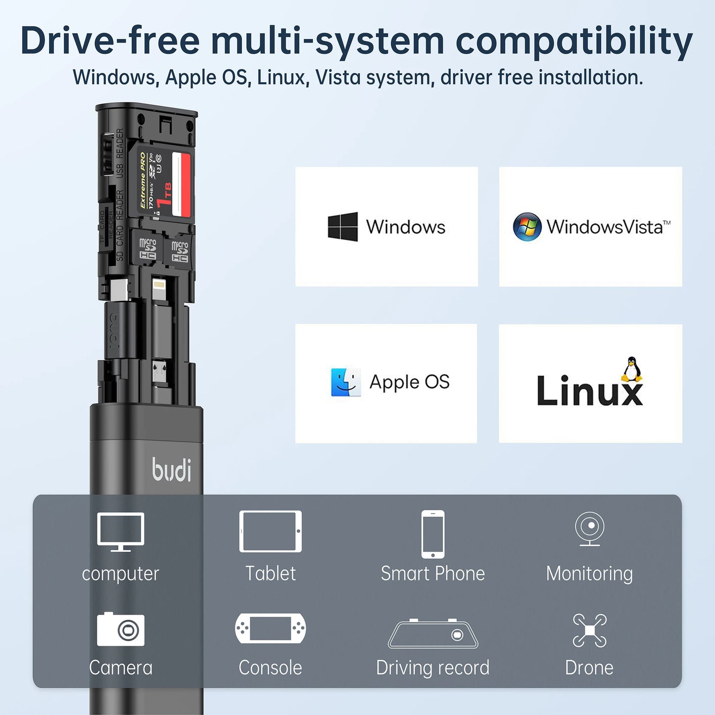 MEMORY CARD SLOTS - As well as 6 TF Card slots and 2 Sim card slots, this multi-tool also has a built in memory reader so you can transfer files on the go.