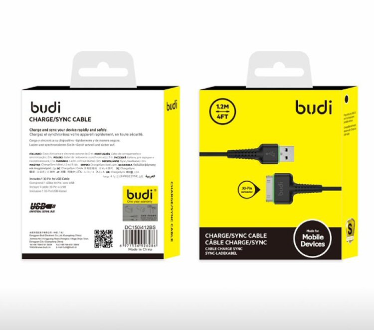 1 x Budi 30 Pin iPhone 4 cable sync / charge cable 2.4A 1.2m Black