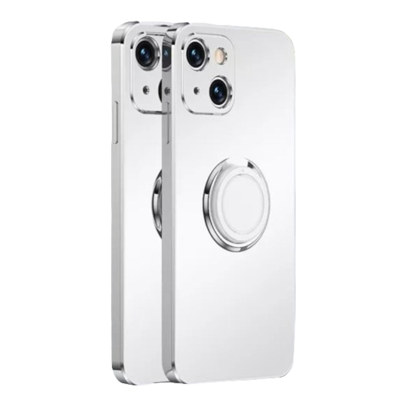 Case For iPhone 13 Pro in White Luxury Plating Magnetic Car Ring