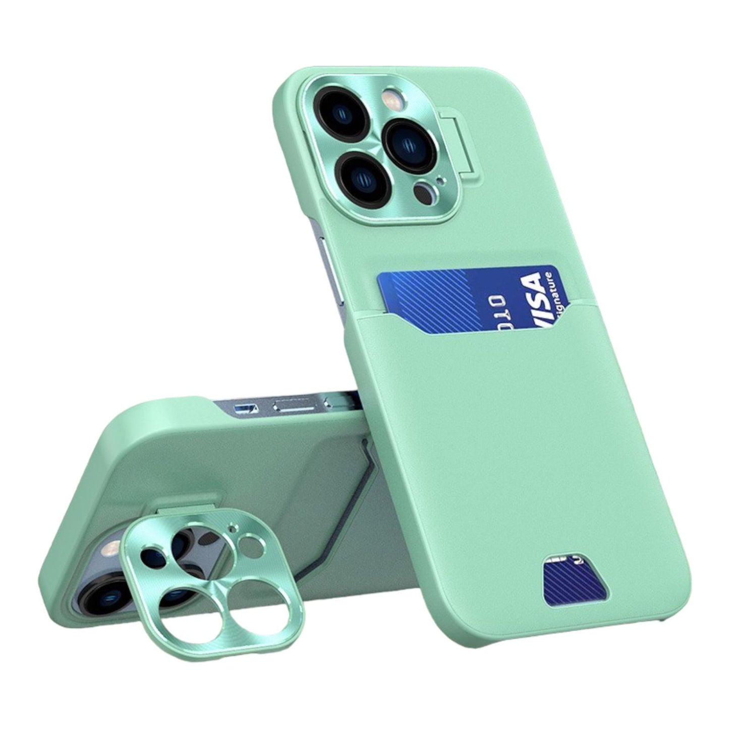 Case For iPhone 14 in Green Card Holder Lens Protector Stand