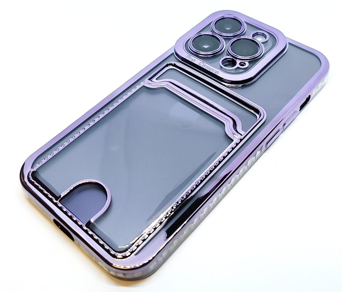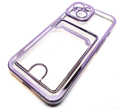Case For iPhone 14 Plus Clear View Card Holder With Styled Edge Purple