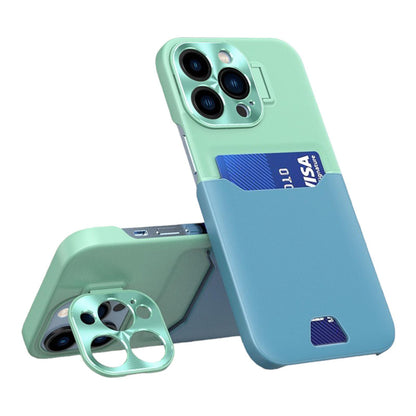 Case For iPhone 14 Plus in Green Blue Card Holder Lens Protector Stand