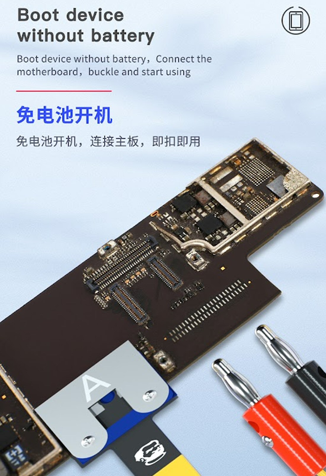 ONE TO ONE REDUCTION - Use the cables to simulate and restore the iPad battery flex cable.