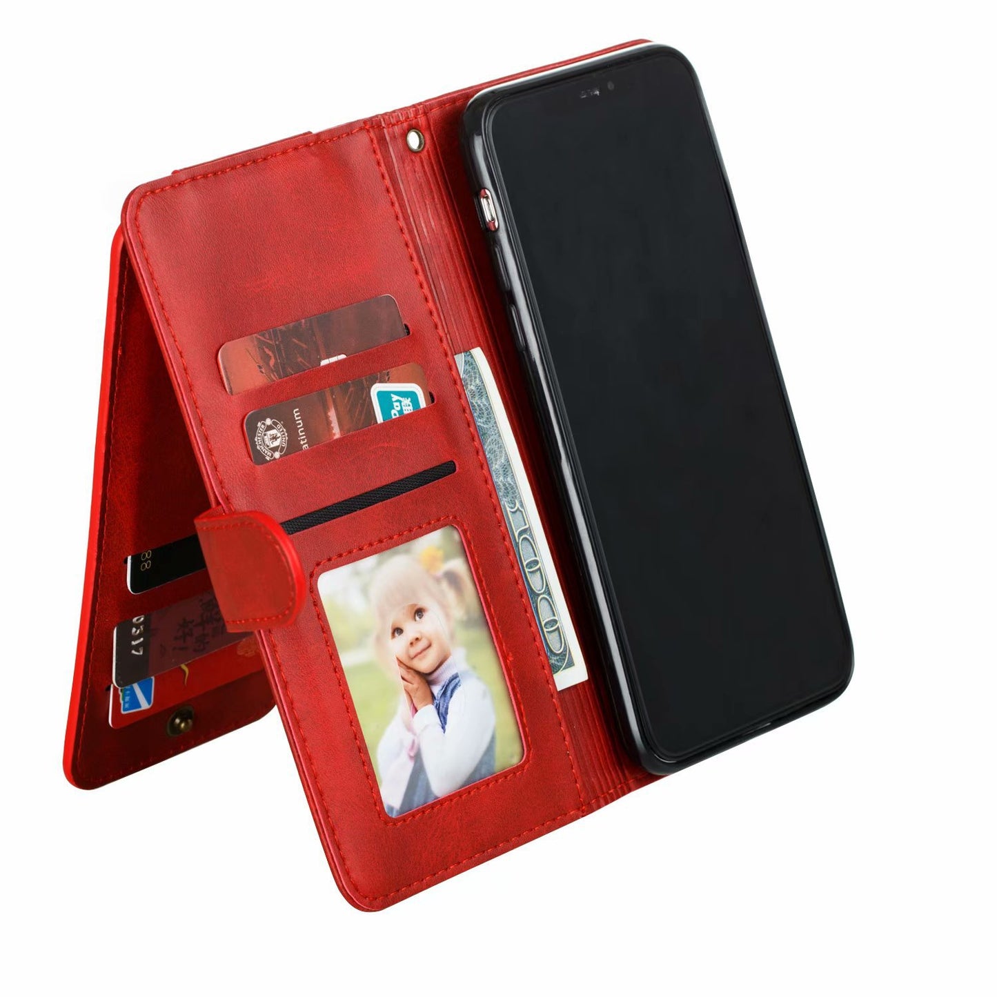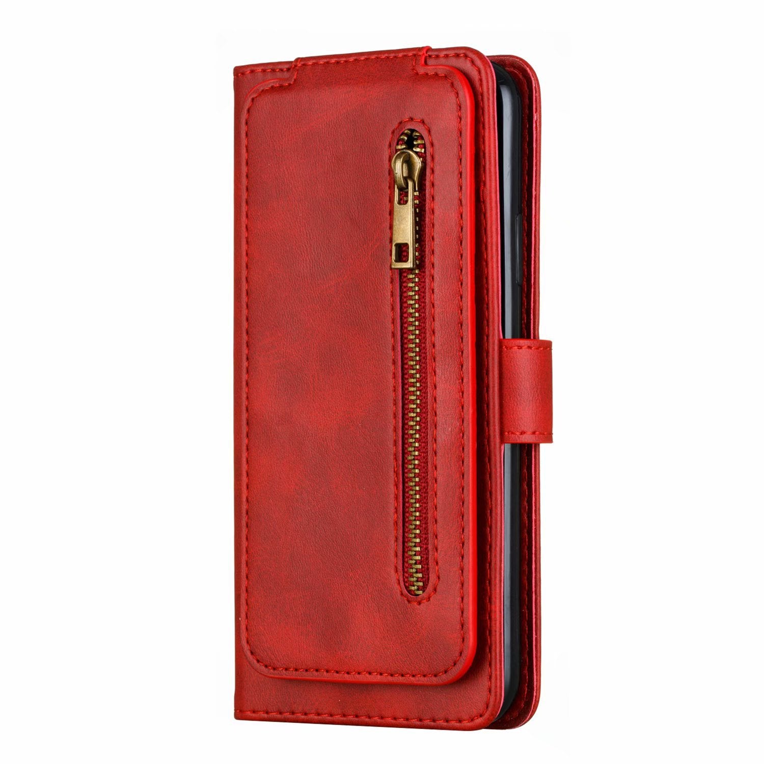 Flip Case For iPhone 13 Pro Wallet with Zip and Card Holder Red