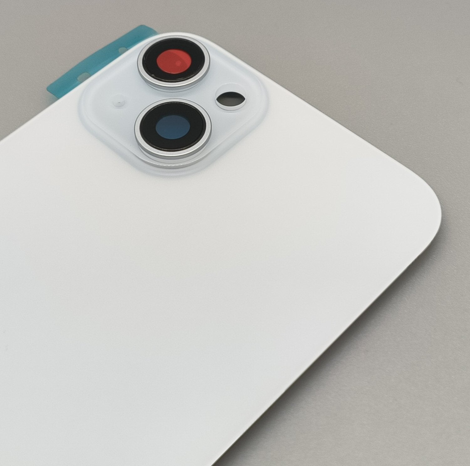 Glass Back For iPhone 15 Plus Blue Battery Door Camera Lens Bezel Magnetism Ring + Metal Plate Plain Without Logo
