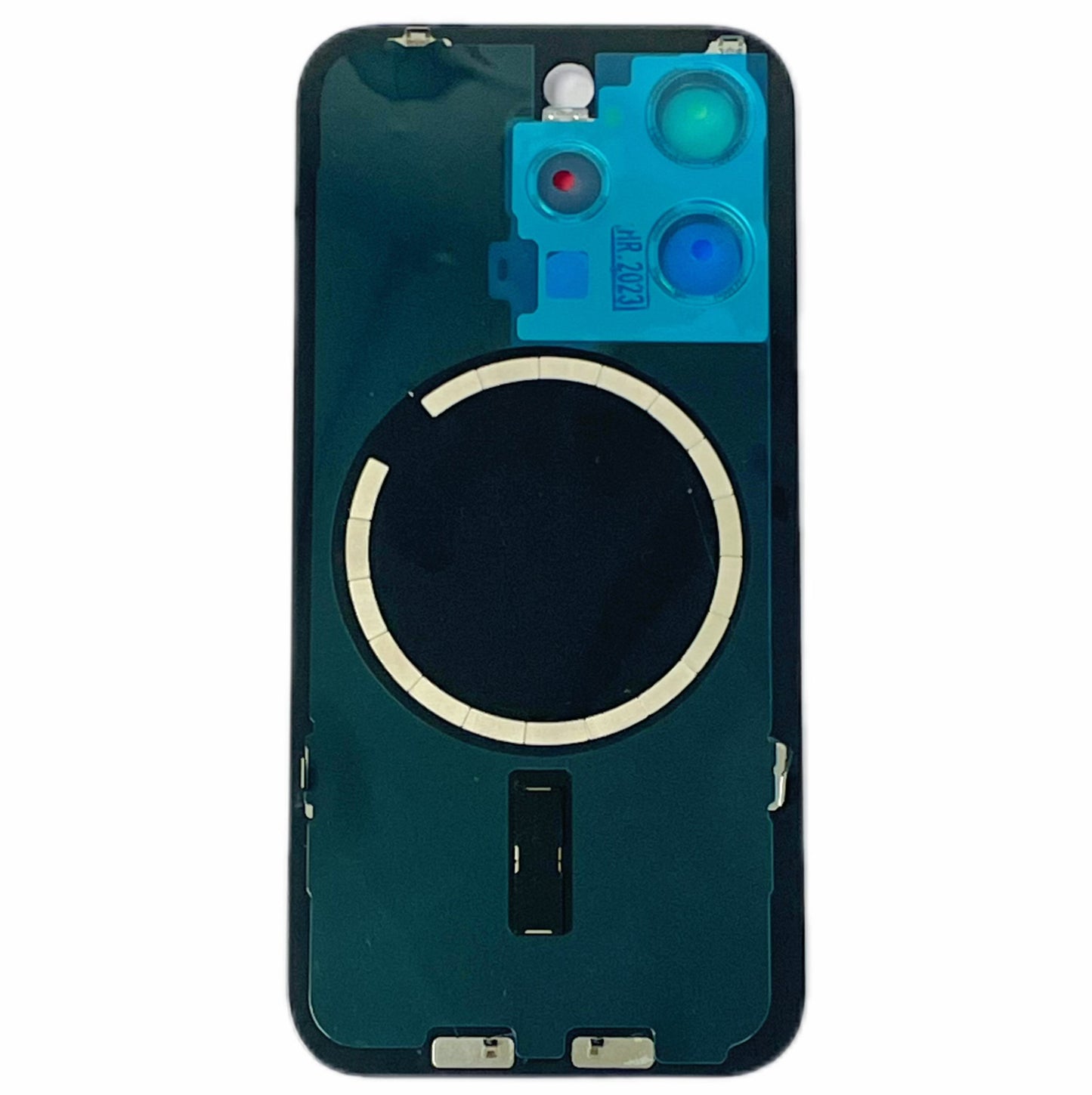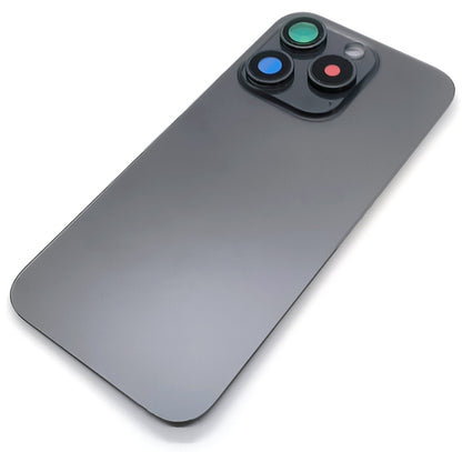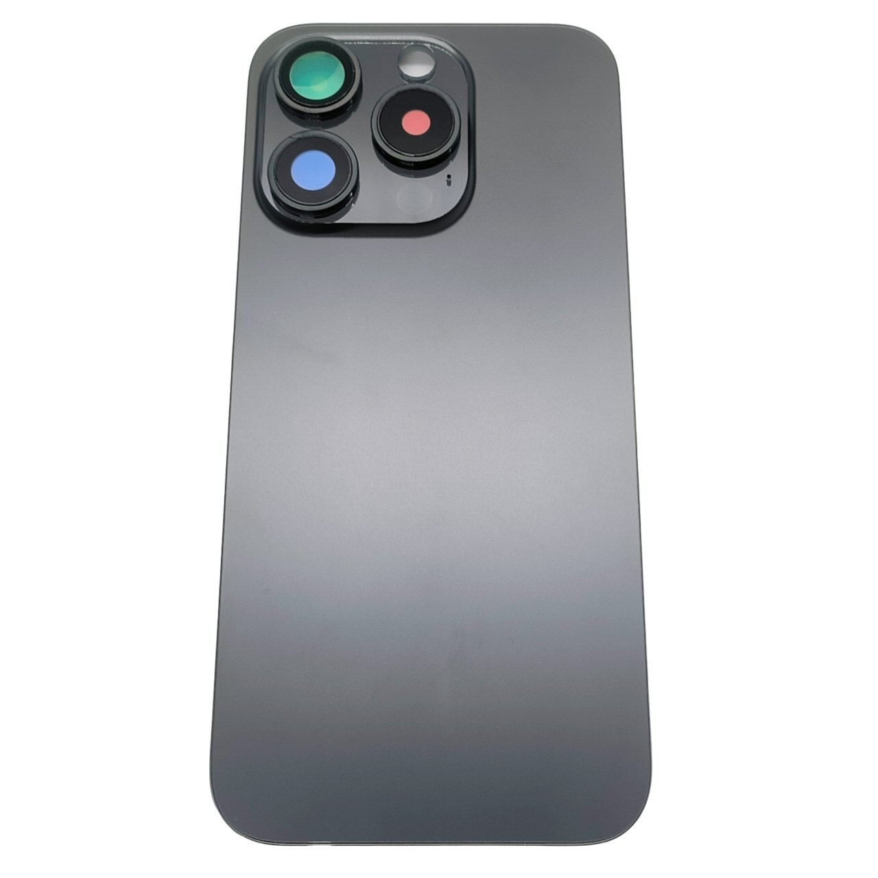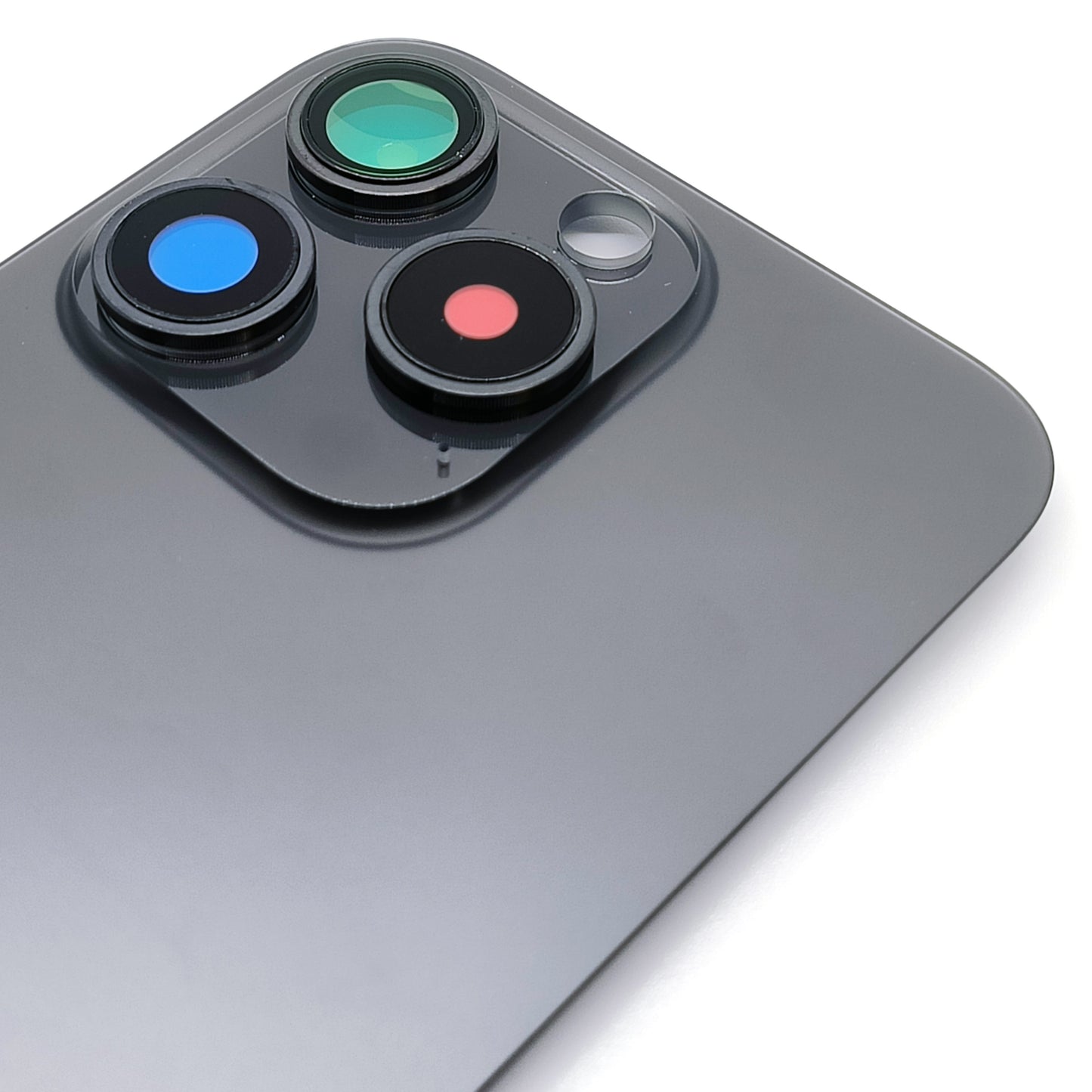 Glass Back For iPhone 15 Pro Black Titanium Battery Door Camera Lens Bezel Magnetism Ring + Metal Plate Plain Without Logo