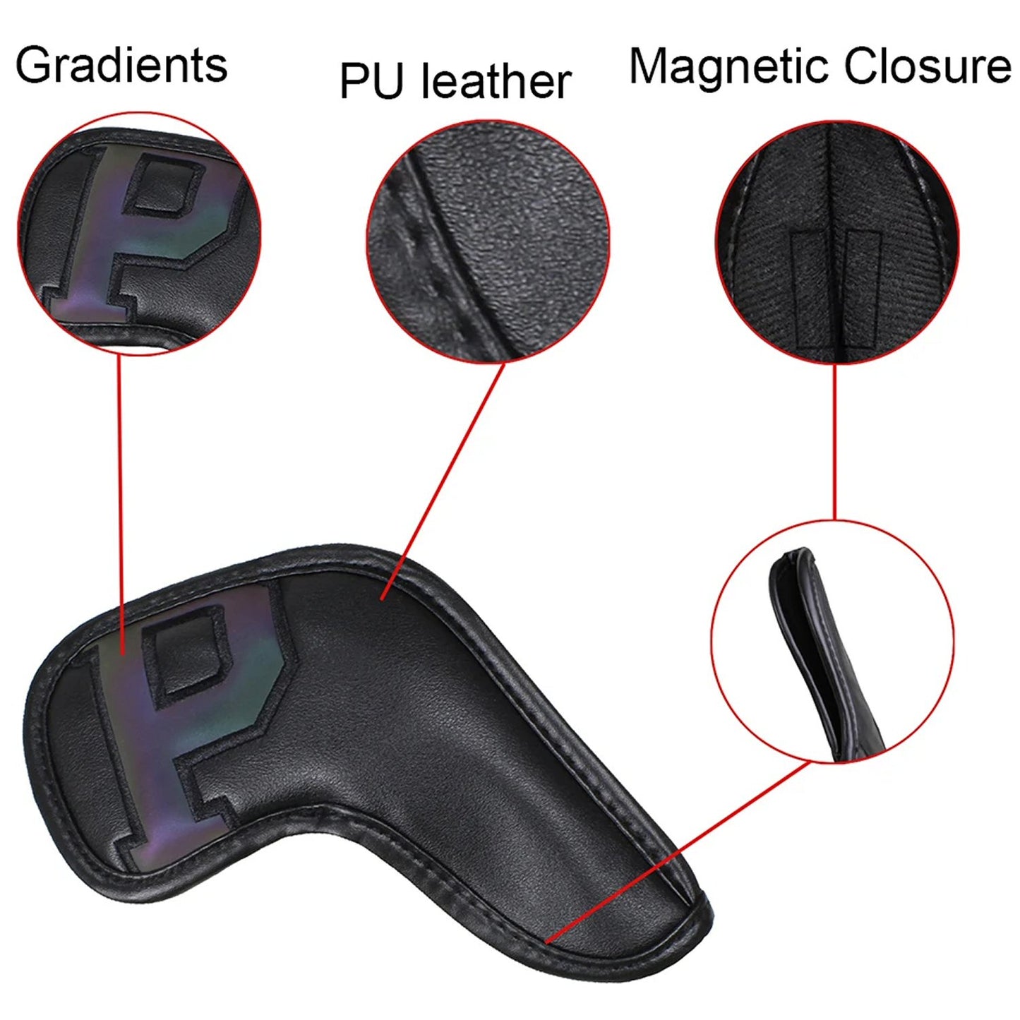 Golf Iron Head Covers With Magnetic Closure Gradient Black 10 Pcs
