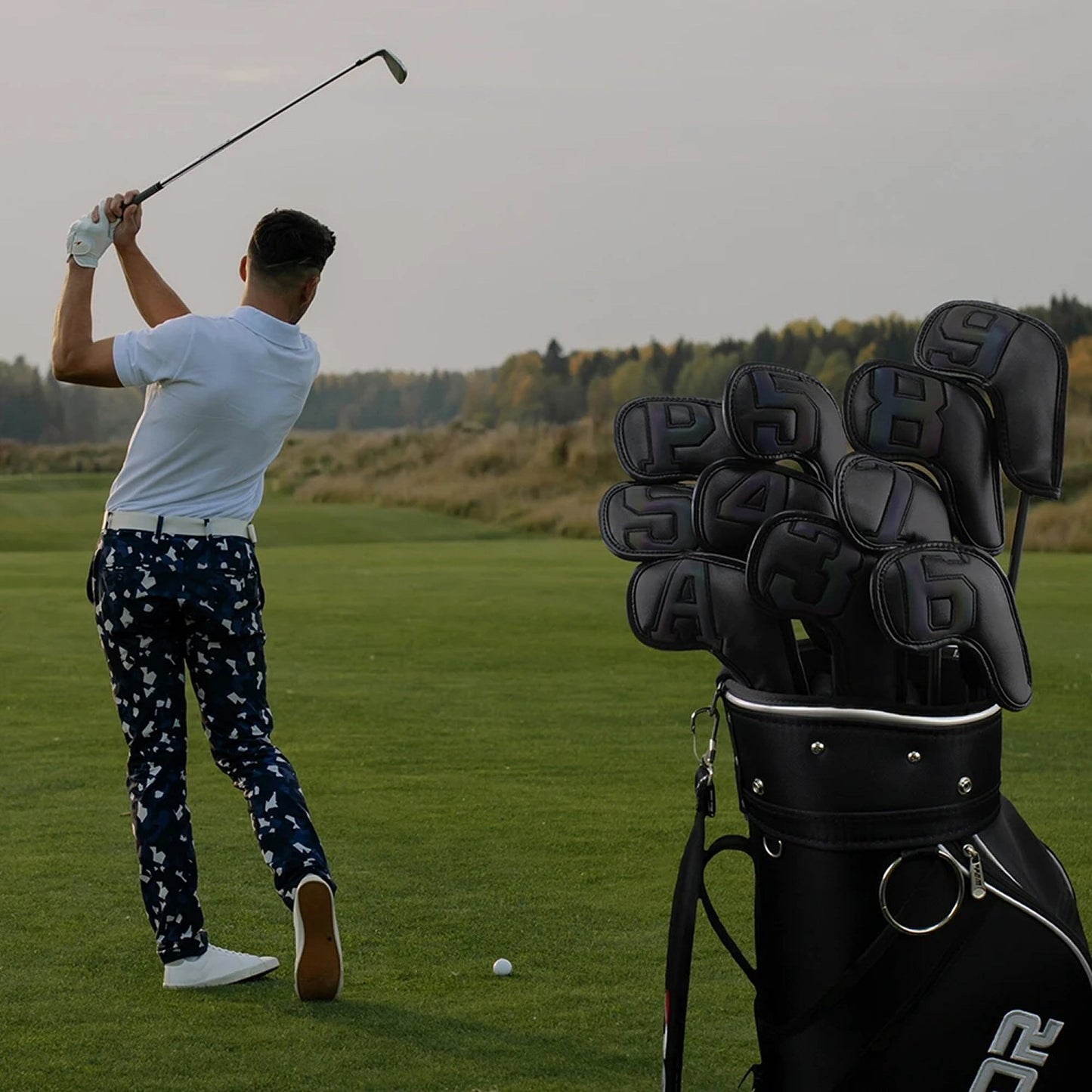 1 x Golf Iron Head Covers With Magnetic Closure Gradient Black 10 Pcs