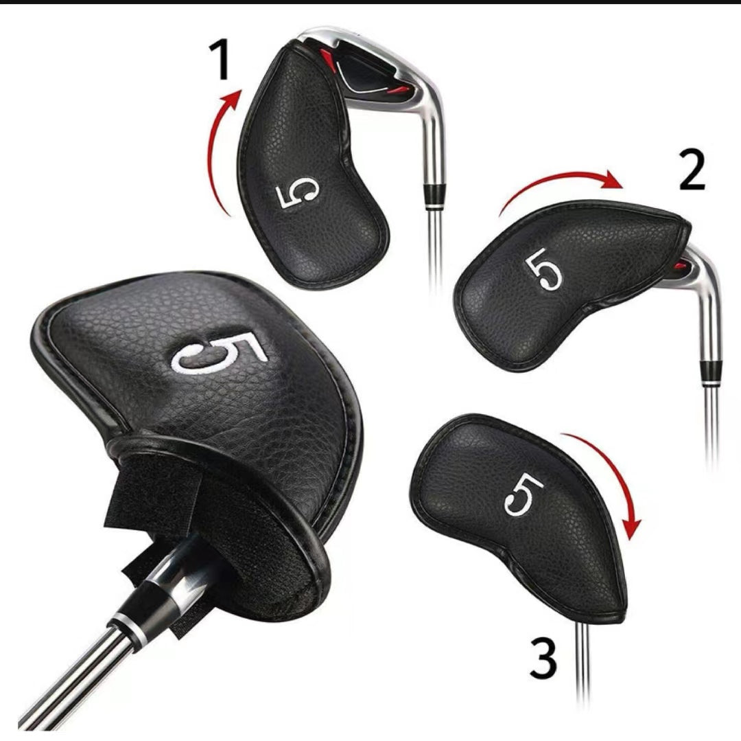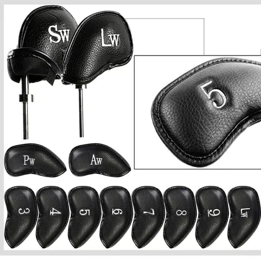 Leather Golf Club Headcovers Irons Set 12 Pcs Club Iron Head Covers in Black