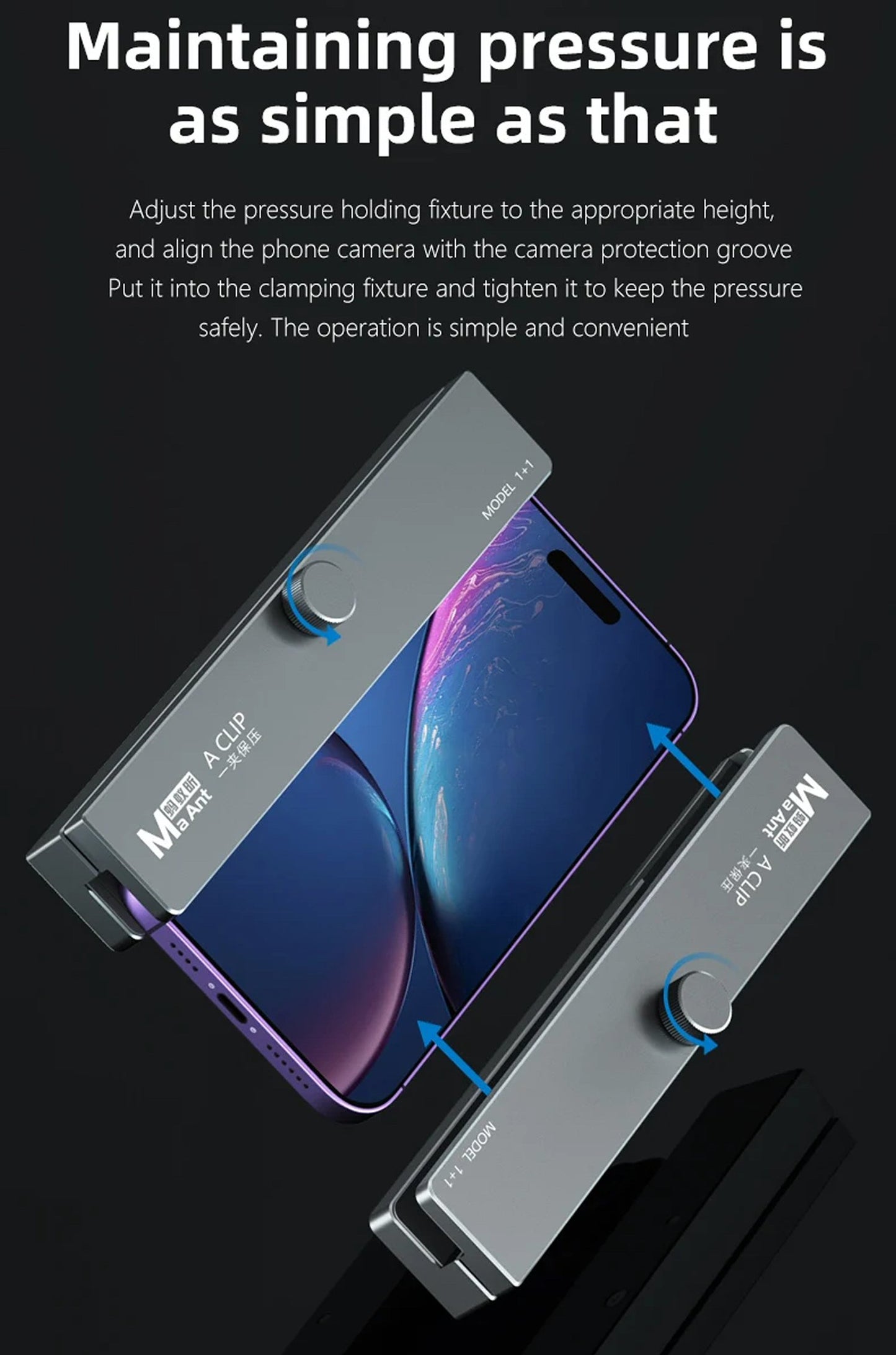 Specialized Design: The MAANT 1+1Rotary Pressure Holding Fixed is specifically designed for iPhone and iPad repair, offering a rotary pressure holding mechanism.