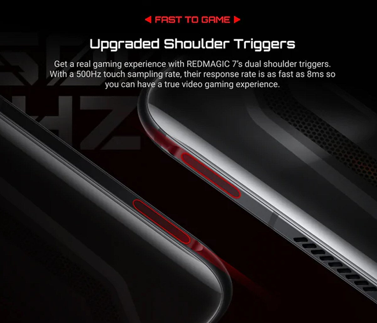 SCREEN - The RED MAGIC 7 is fit with a 6.8" AMOLED screen to not only give you the smoothe mobile gaming experience but the clearest and most visually crisp experience.