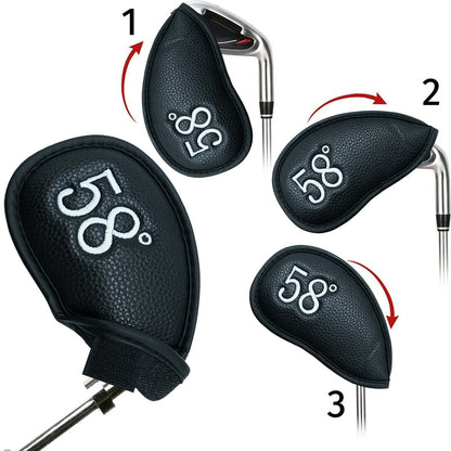PU Leather Wedge Iron Head Covers Black 8 Pcs