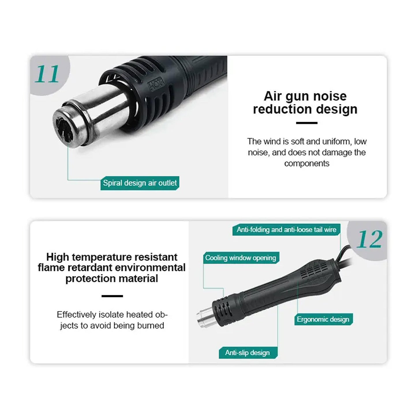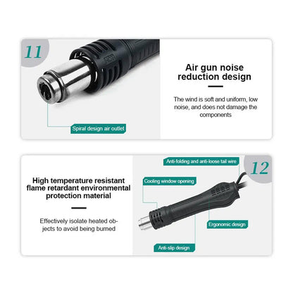 AIR COOLING - The device has an automatic air cooling mechanism that can extend the life of the heating element while also protecting the heat gun.