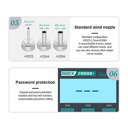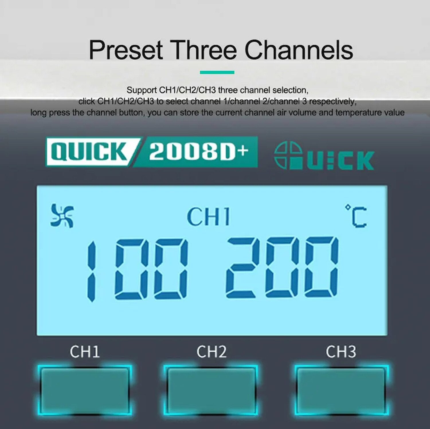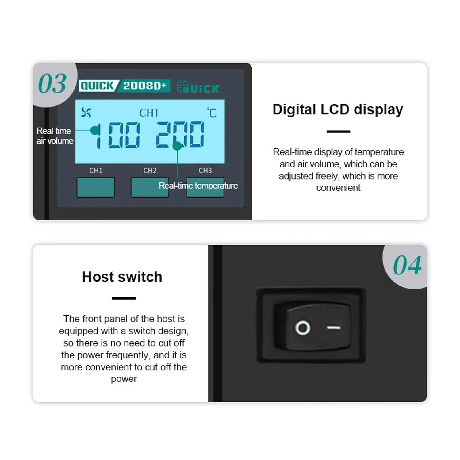 QUICK 2008D+ Desoldering Rework Station Hot Air Gun For Mobile Phone Repair 220V