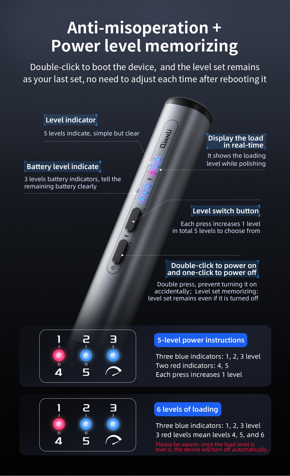 Multi-Level: This grinding pen has 5 RPM settings Safety: For your peace of mind, this grinding pen is resistant to a wide range of hazards, It protects against overloads of voltage and current, as well as charging and discharging and temperature.