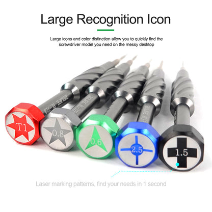 HEAD TYPES - This screwdriver set includes 1.5 Cross Head, 2.5 Convex Head, Pentalobe P2 0.8mm, TRI-Point T0.6 and a Torx T1