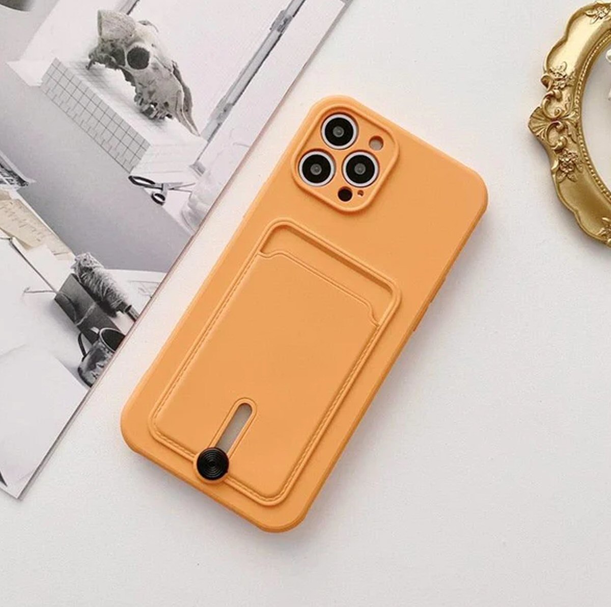 Silicone Card Holder Protection Case For iPhone 15 Pro Max in Orange