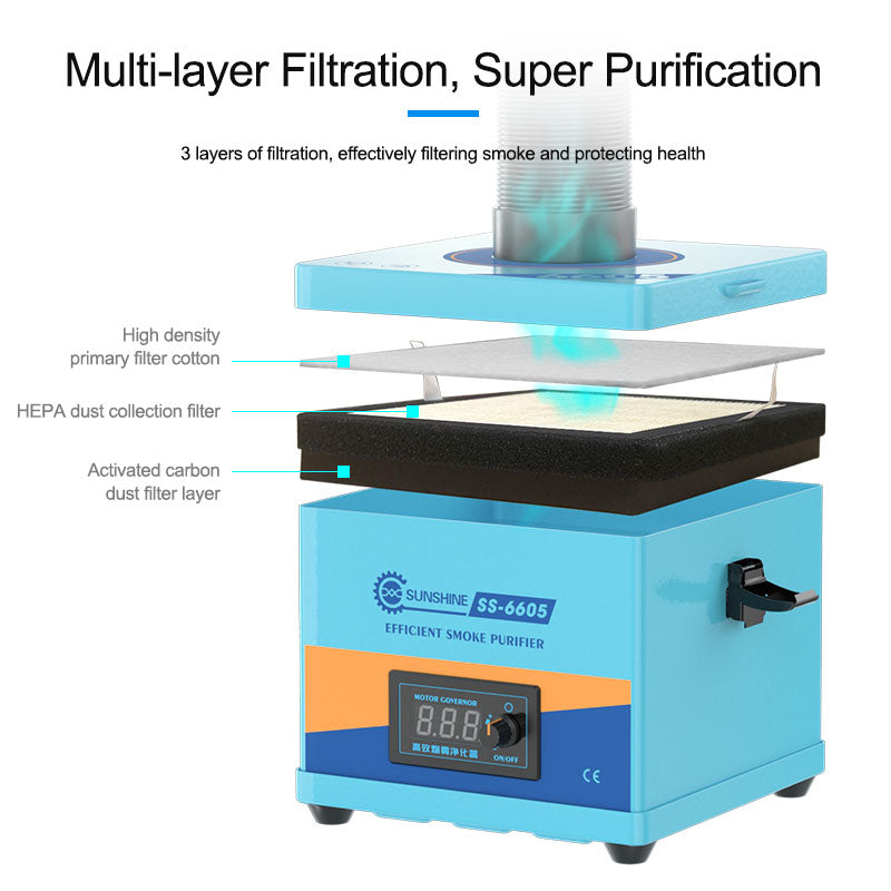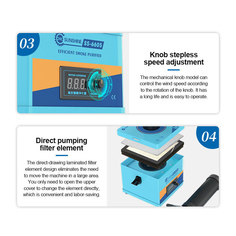 Ideal for Soldering Stations: Perfectly suited for use in electronics workshops, laboratories, and any environment where soldering is performed, the SS6605 improves air quality and minimizes the health risks associated with inhaling solder fumes.