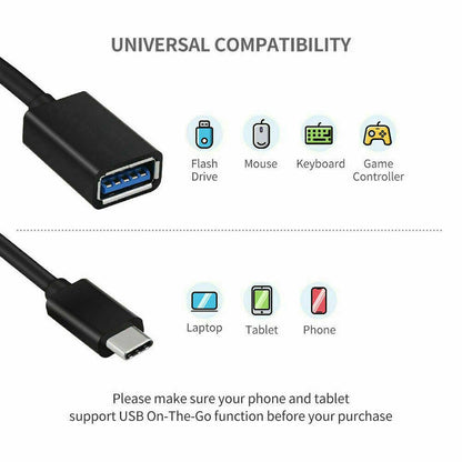 USB 3.1 Type C to USB A Female OTG On The Go USB Host Adapter Cable 16 CM