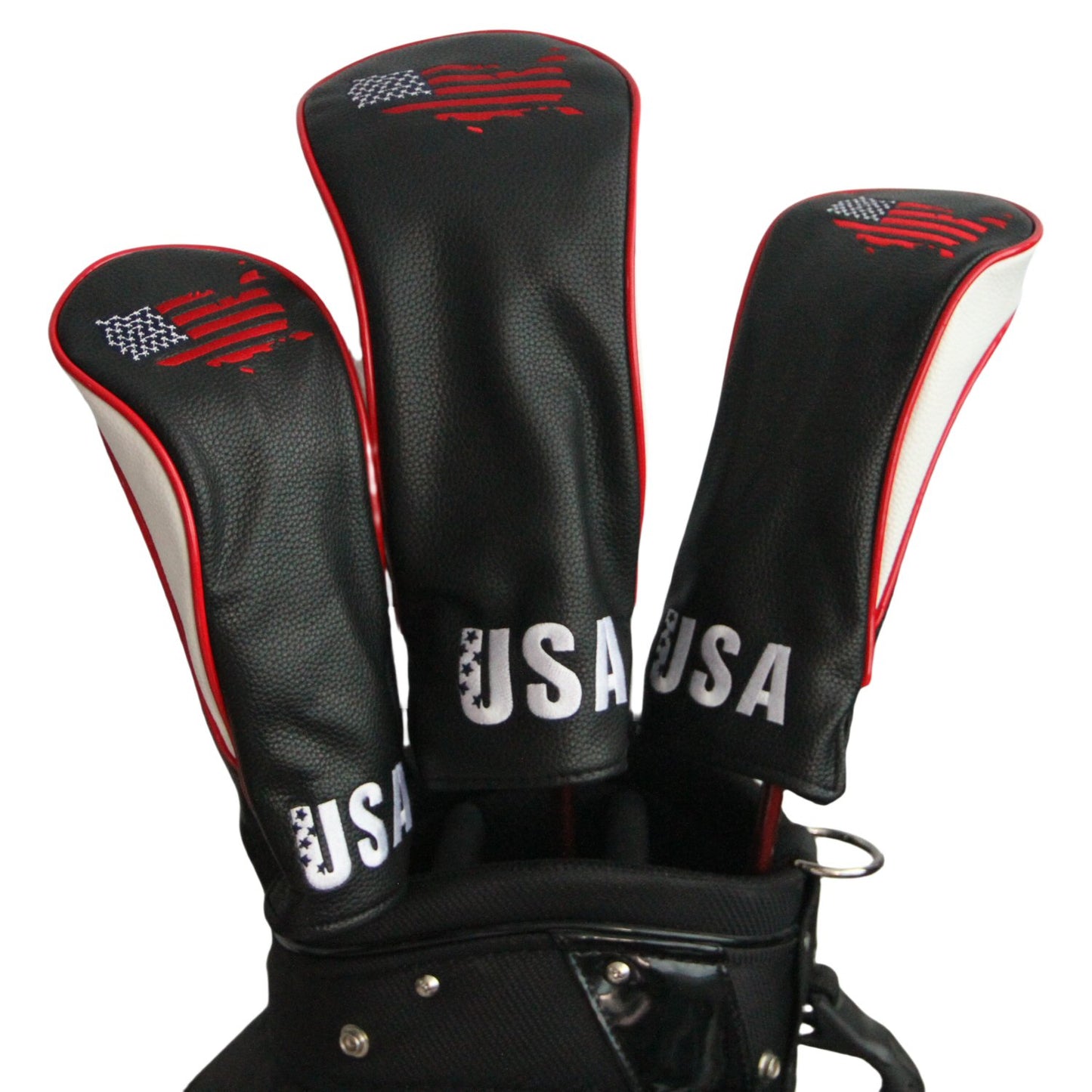 USA Flag Covers Driver 1 3 5 Headcovers 3Pcs Black